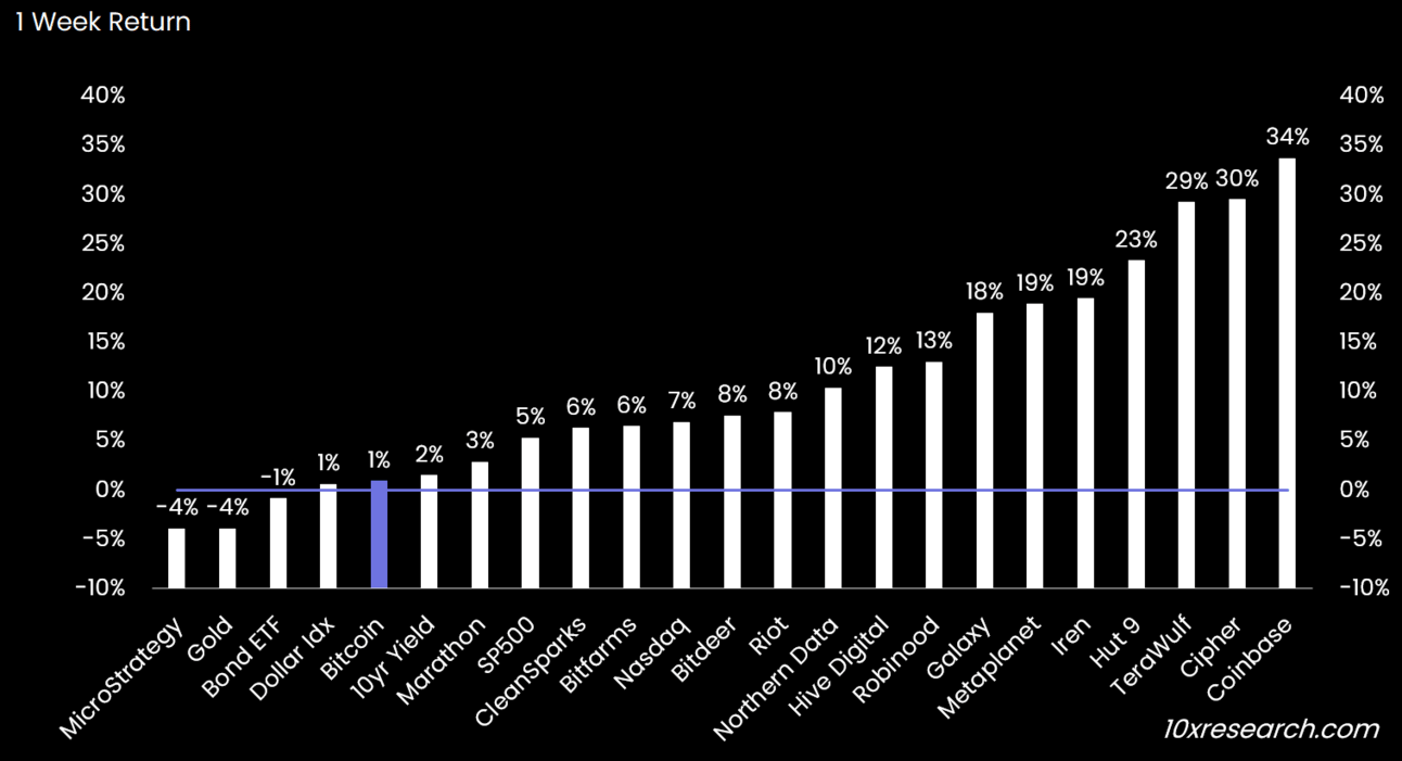 Bitcoin surged above $100,000, driven by institutional inflows into US spot Bitcoin ETFs, but struggled to break the $105,000 resistance due to profit-taking. MicroStrategy’s stock wavered despite acquiring 13,390 more Bitcoins, as short-seller criticism weighed on sentiment. US tech stocks, led by Nvidia and AMD, rallied on AI deals, while the Dollar Index fell amid weaker economic data and rising global currencies. Gold saw its steepest weekly drop in six months, pressured by a stronger dollar and fading safe-haven demand. Marathon Digital, Riot Platforms, and Bitfarms navigated mixed earnings, with investor focus shifting to strategic expansions.
